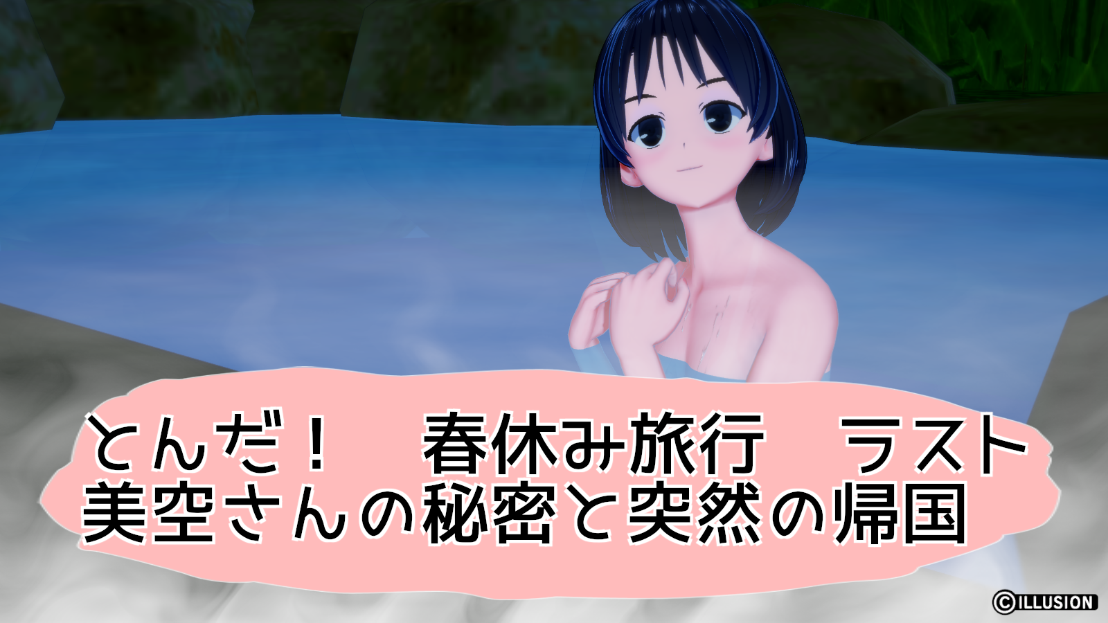 とんだ! 春休み旅行 ラスト 美空さんの秘密と突然の帰国 2020.04.02シリーズADVパートありHパートあり感想求続編秘湯シリーズ物ラストです。 今回はクイズのミニゲームと、美空さんの入浴シーン、かなり無茶な展開の帰国があります。美空さんのカラダを見てお楽しみください。