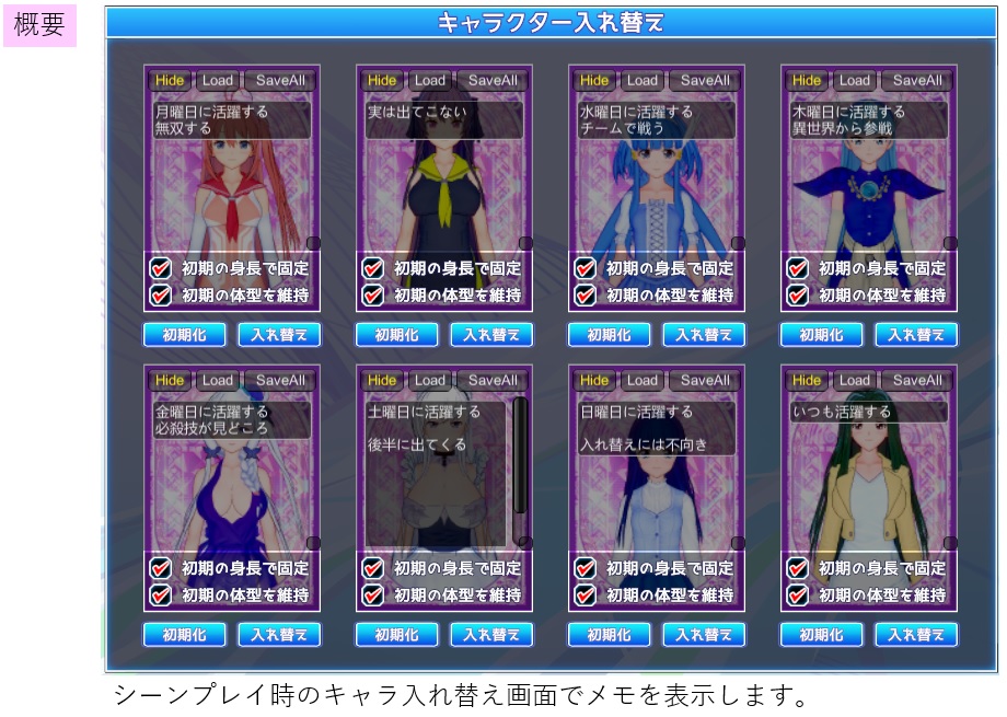 ・シーンプレイのキャラ変更のときにメモを表示します。