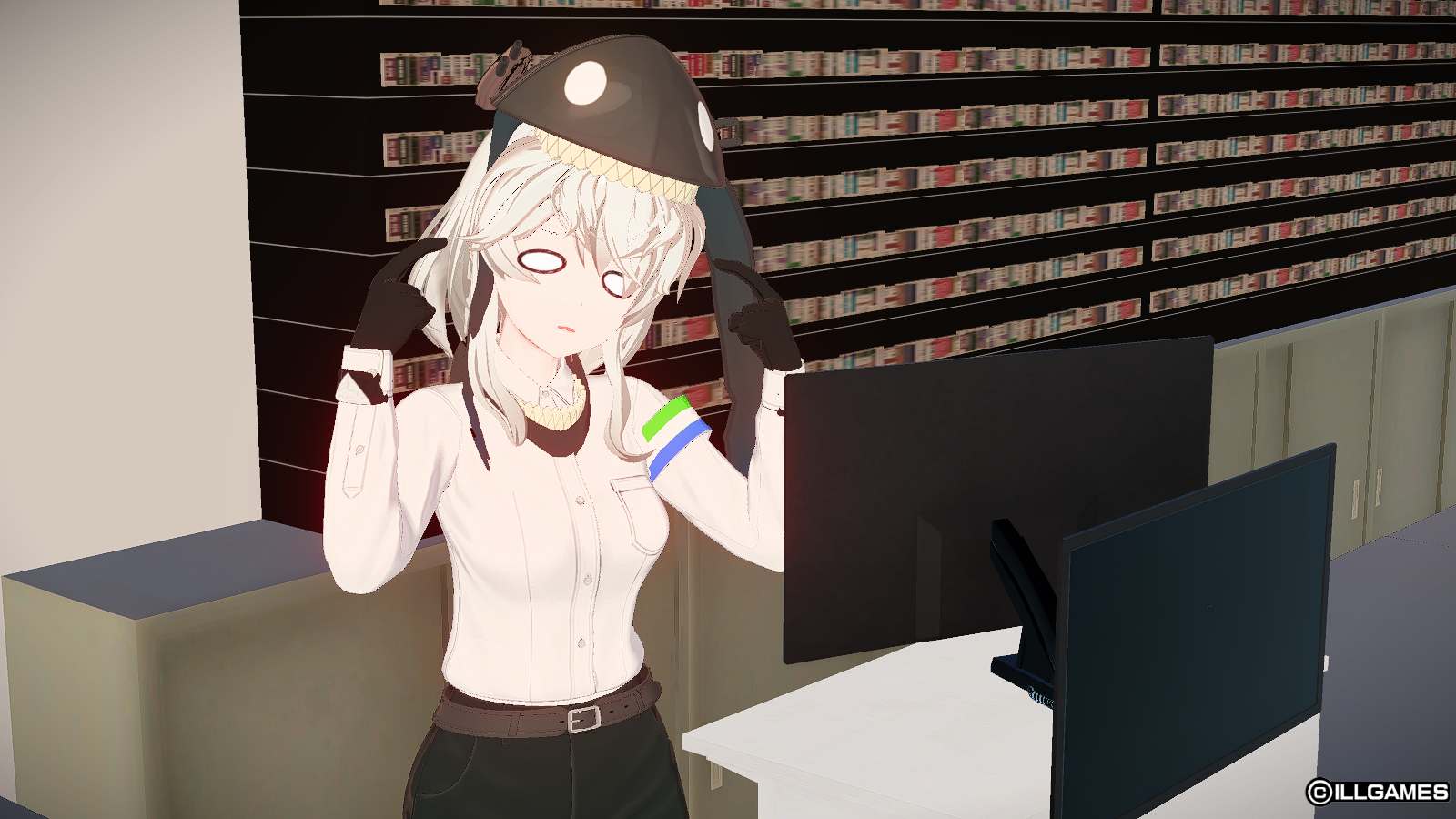 例えば、私服に風呂着を重ねて帽子なしにしたい場合は、風呂着側のアクセ9(コンシェルジュネクタイ)以外をオフにして重ねてください。帽子ありの場合はそのまま重ねれば問題ありません。