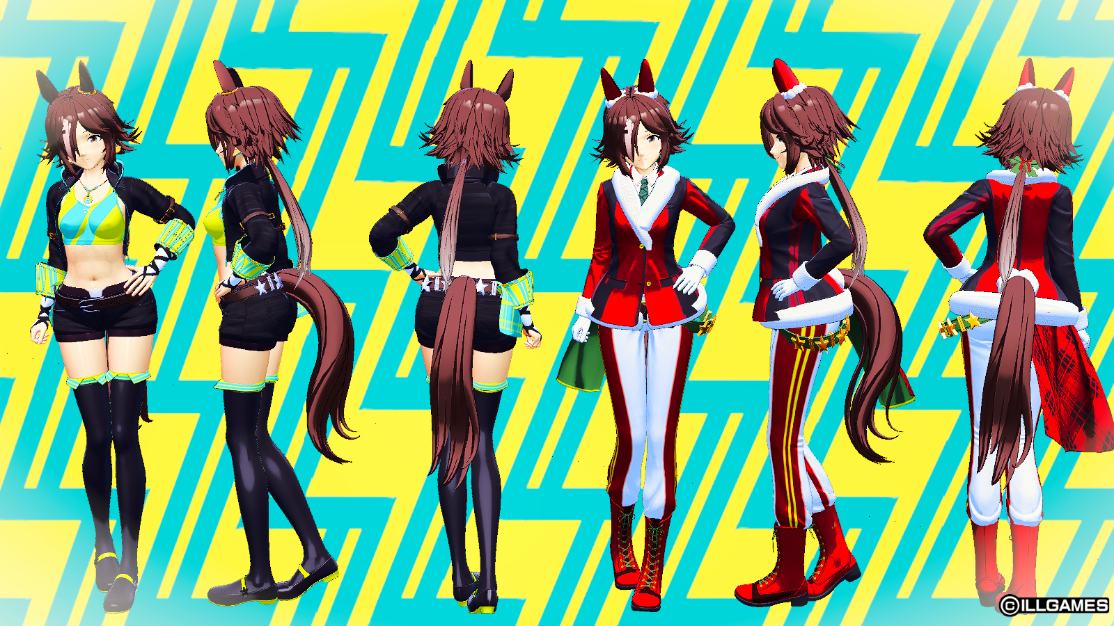 - 勝負服(クリスマス):季節外れですが作成しました。衣服を考えると無理があると思いますが、それなりの色合いにはなってますので、言い切ることにしました