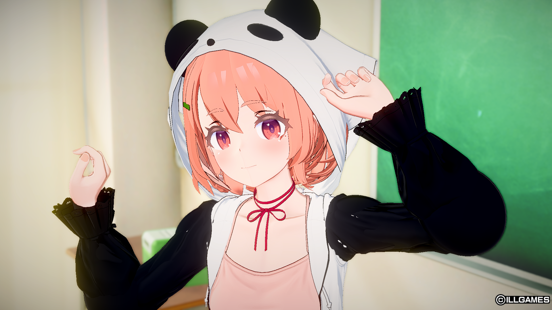 パンダパーカーを無理やり作ってみました。袖のテクスチャ漏れがありますが、
