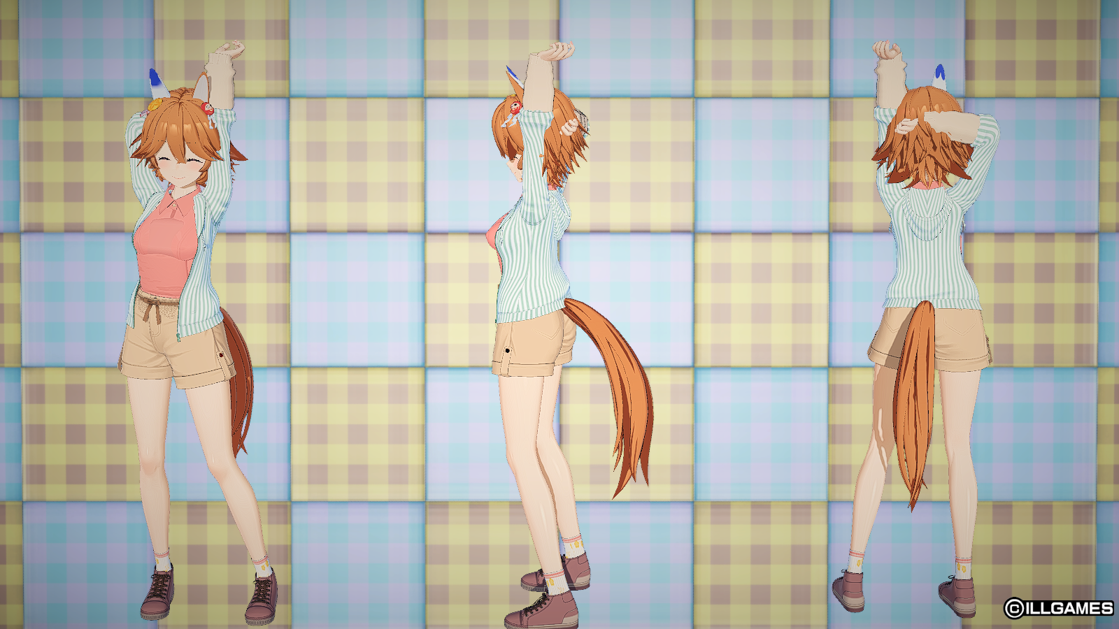 - 私服:勝負服です。にゃーさんが欲しい方はギャラリーからダウンロードして、デジクラで重ねてください。
