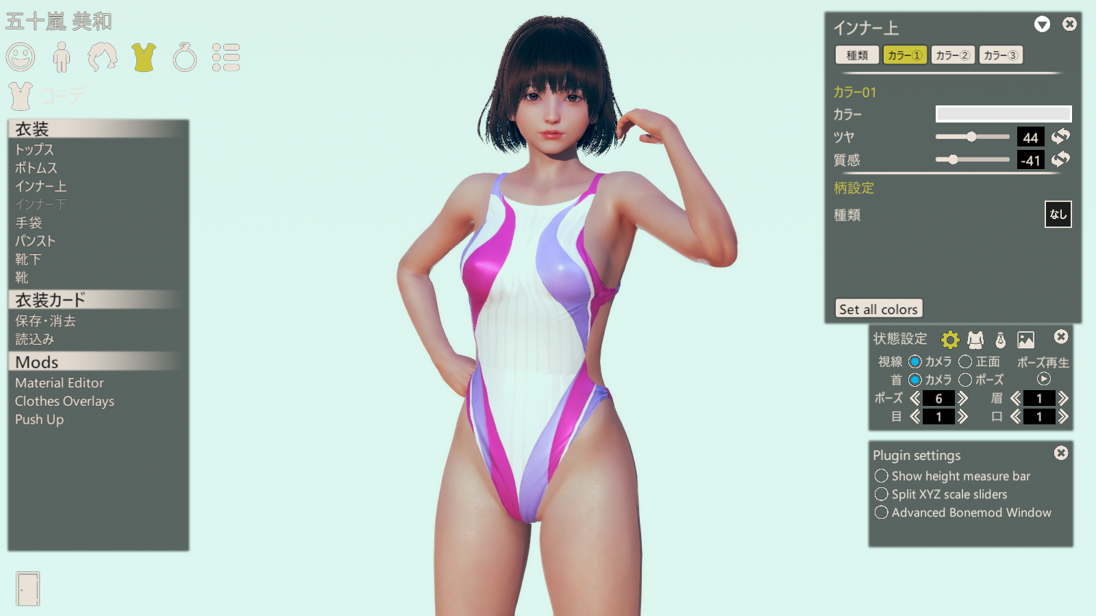 Twilight Fish という名の競泳水着です。HS2にはもともと競泳水着がありますが、こういうものはいくつあってもいいもので、よかったらコレクションに加えて下さい。導入すると、色替えが可能なもの、Twilight Fish、それのウエットバージョン、Sunset Fish、ウエットバージョンの5種類の競泳水着がインナー上に追加されます。