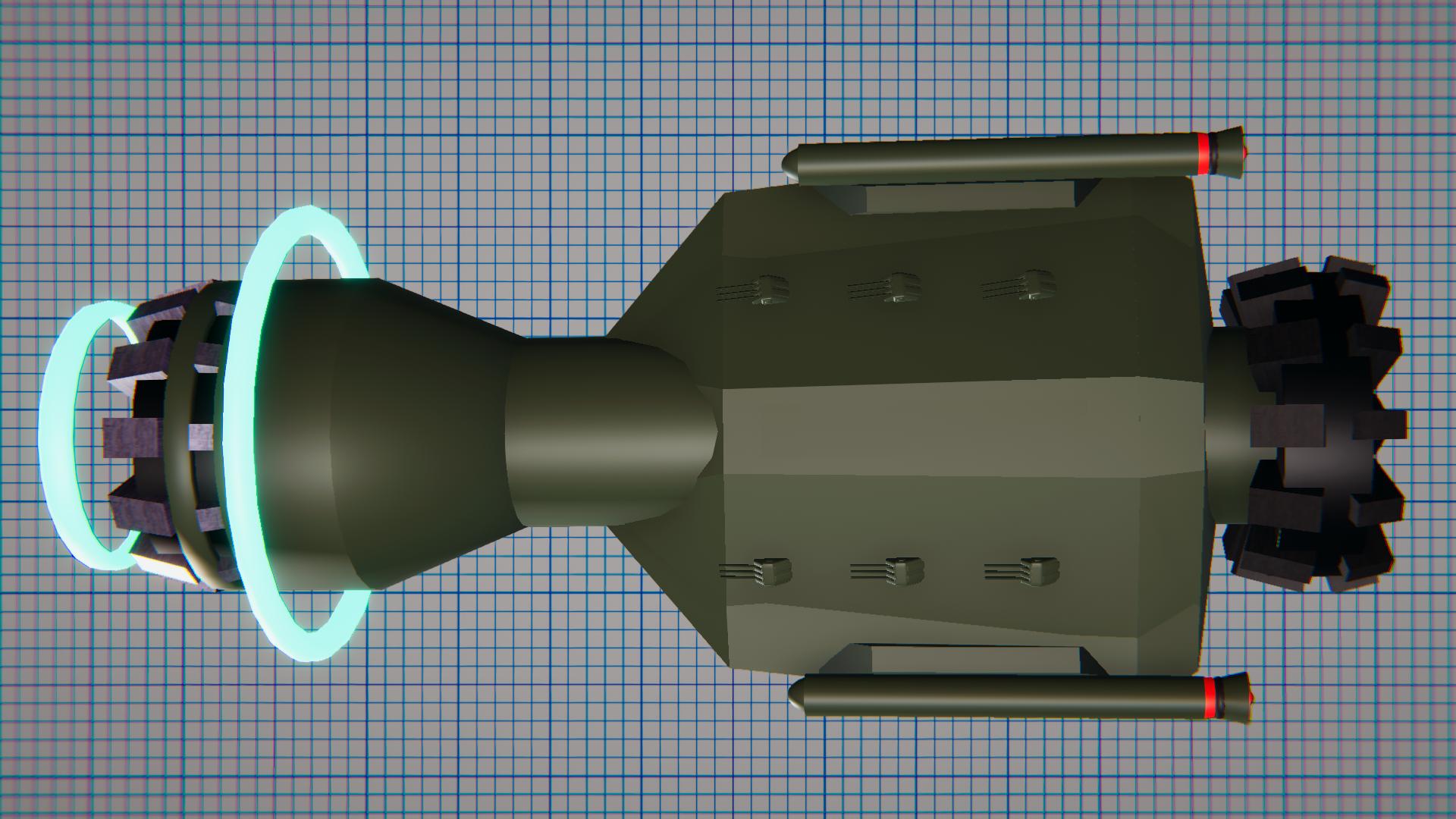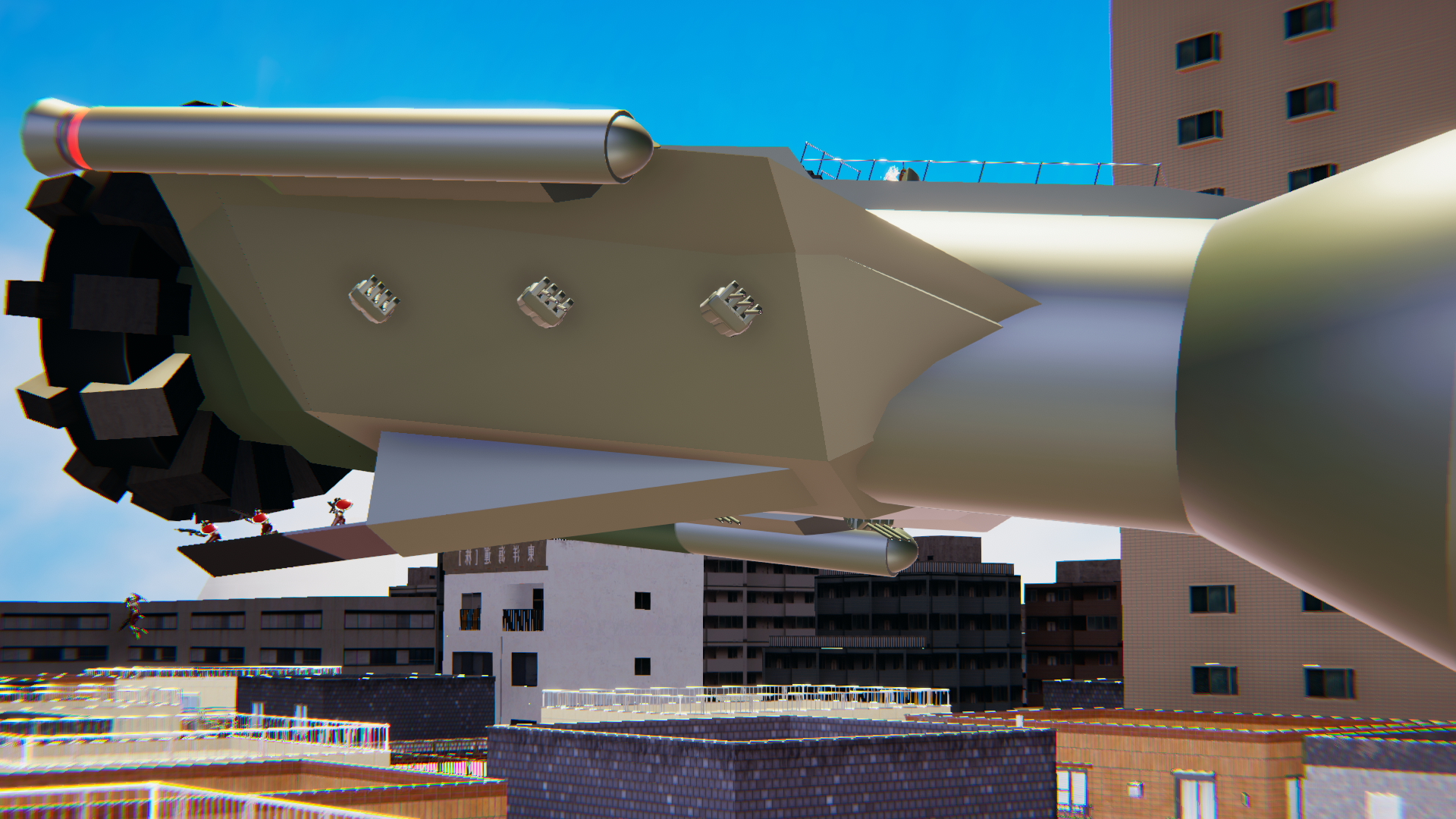 以前の作品で話だけ出てた地上揚陸艦。艦上に舵輪が付いてるけれども、実際は航行や戦闘などすべてを自動化した完全なロボット艦であり、操舵する者が居なくとも作戦行動が可能。一応、クラムソーダさんが操っている方が性能発揮できるかな?ぐらい。