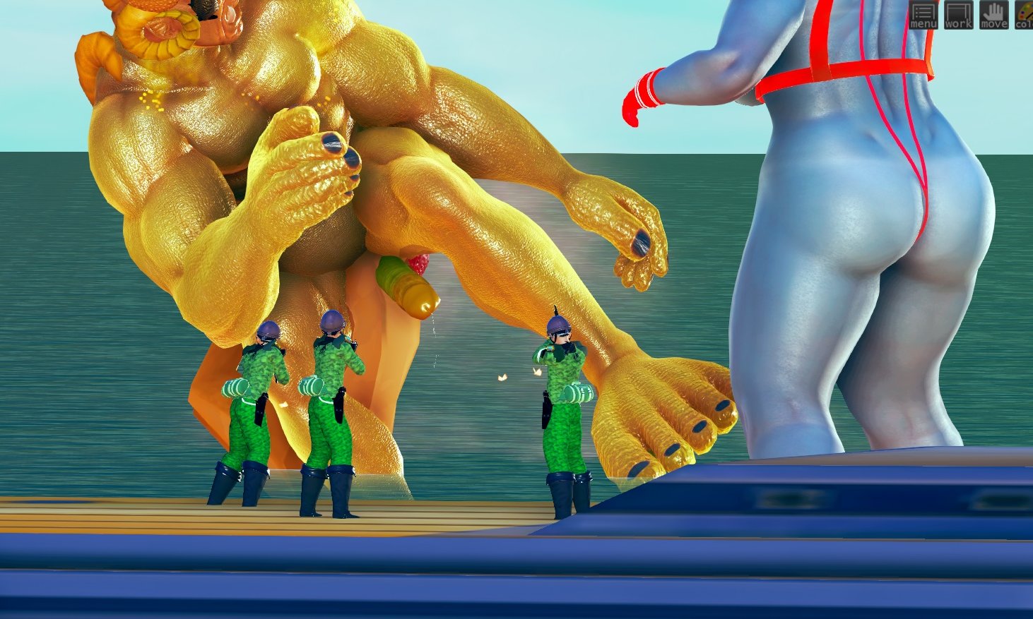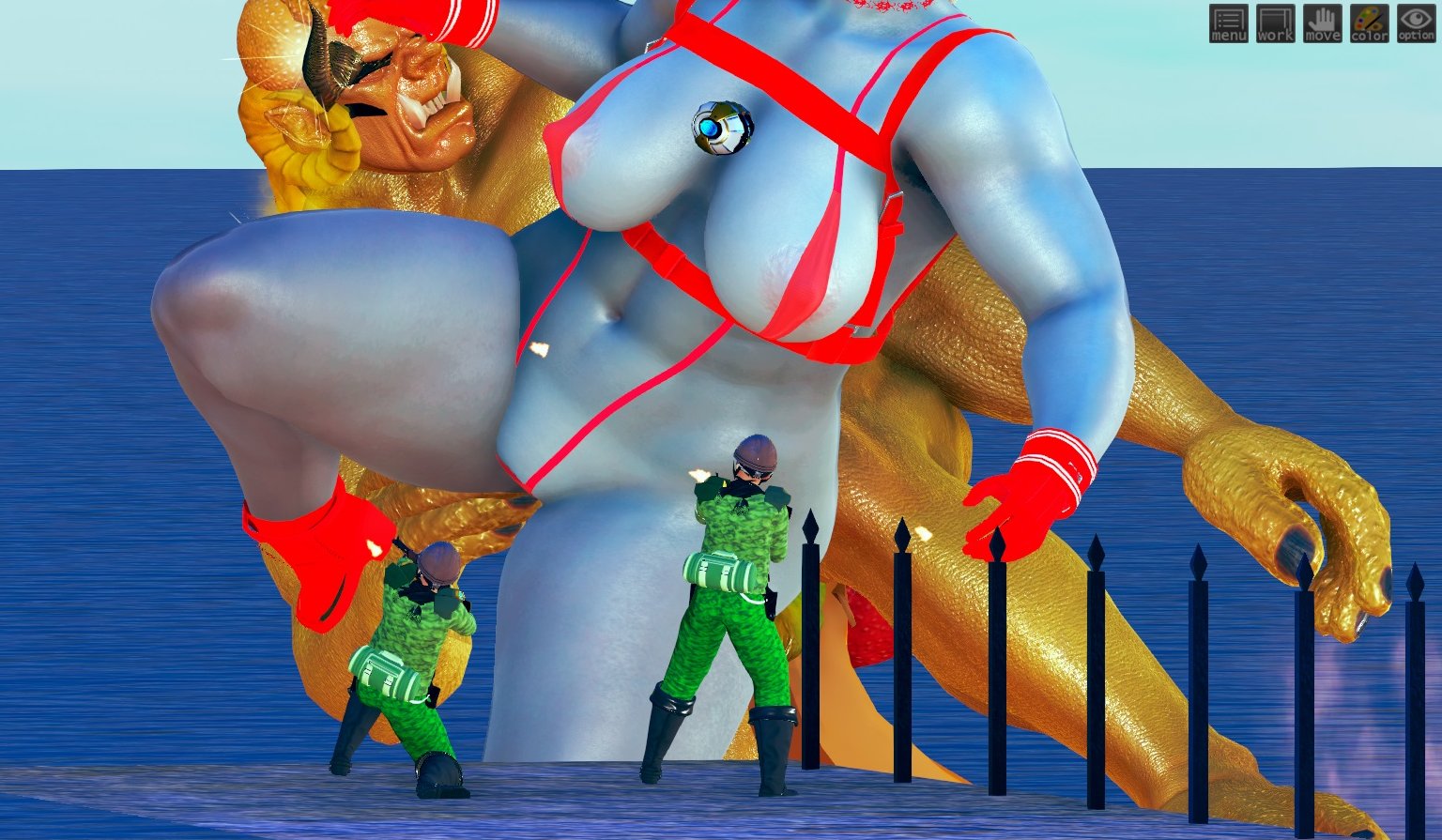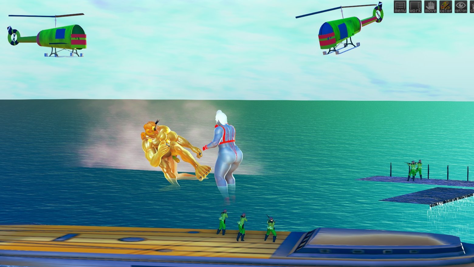 軍からの一斉射撃を受けるシャセイドン。目の前のウ●トラマダムと交尾がしたくてたまりません