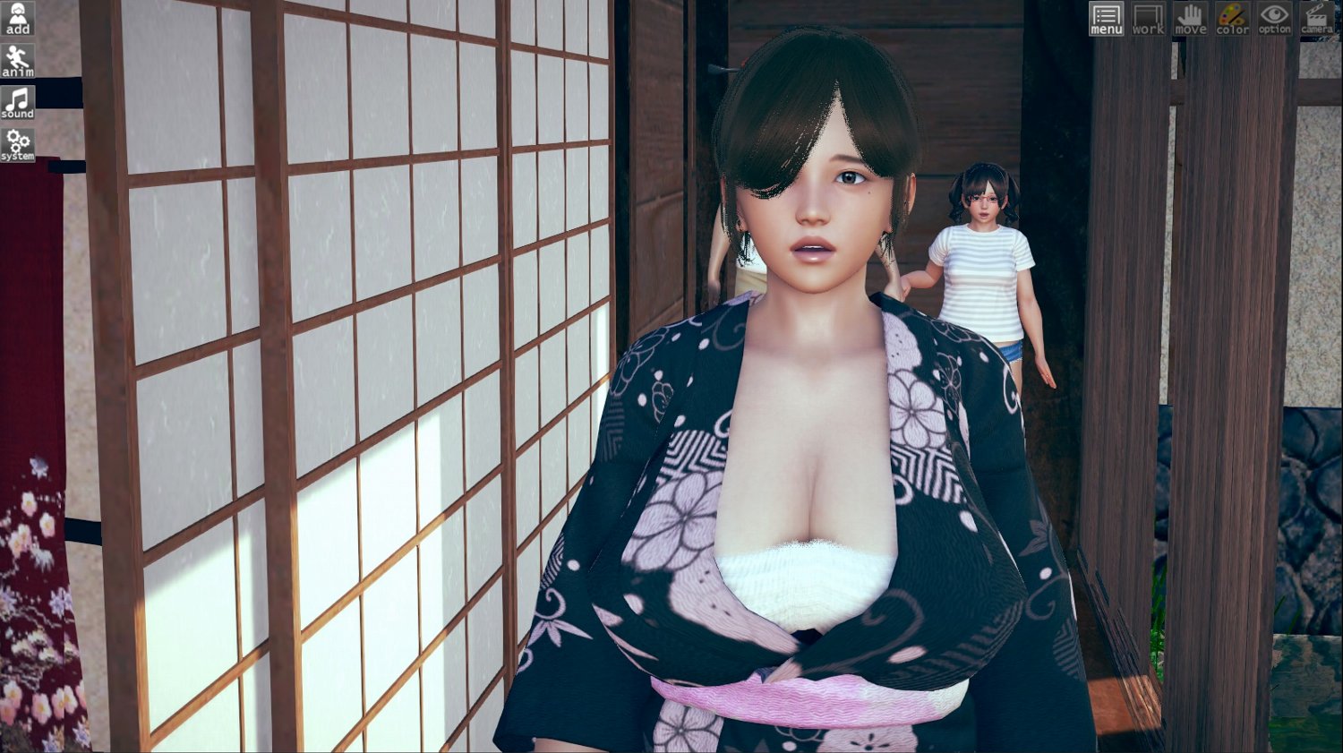 ※ということで、生徒2人と卒業生1人と同時につきあうことになったろくでもない教師です。冒頭の「無駄にエロい仲居さん」は、むかしスタジオじゃなく本編で遊んでいたときに「ブスなんだけど妙にエロい友達の母ちゃん」という設定で作ったキャラなのですが、プレイしている間にだんだん好きになってしまったキャラです(笑)久々に引っ張り出してみました。