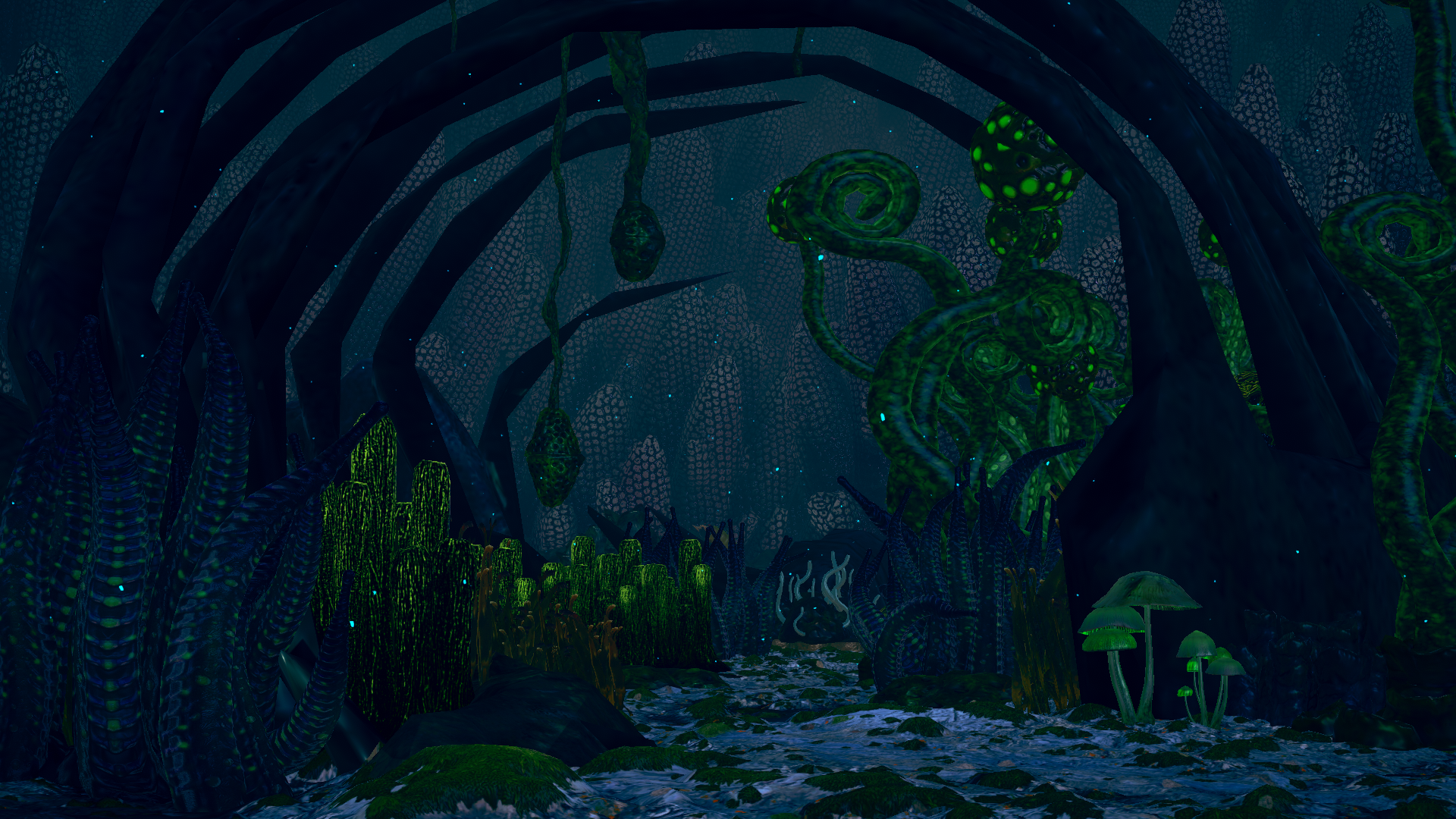 本シーンは、風の谷のナウシカでお馴染みの腐海の森をイメージして作成したものです(不要な情報ですがナウシカは私の性癖でもあります)。