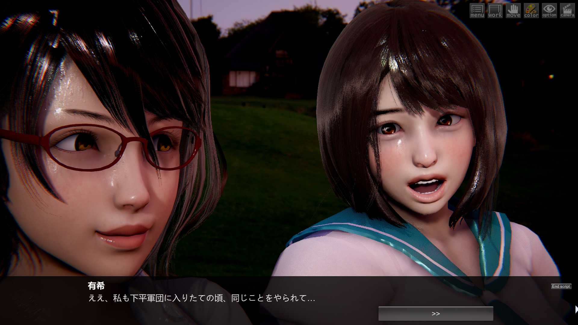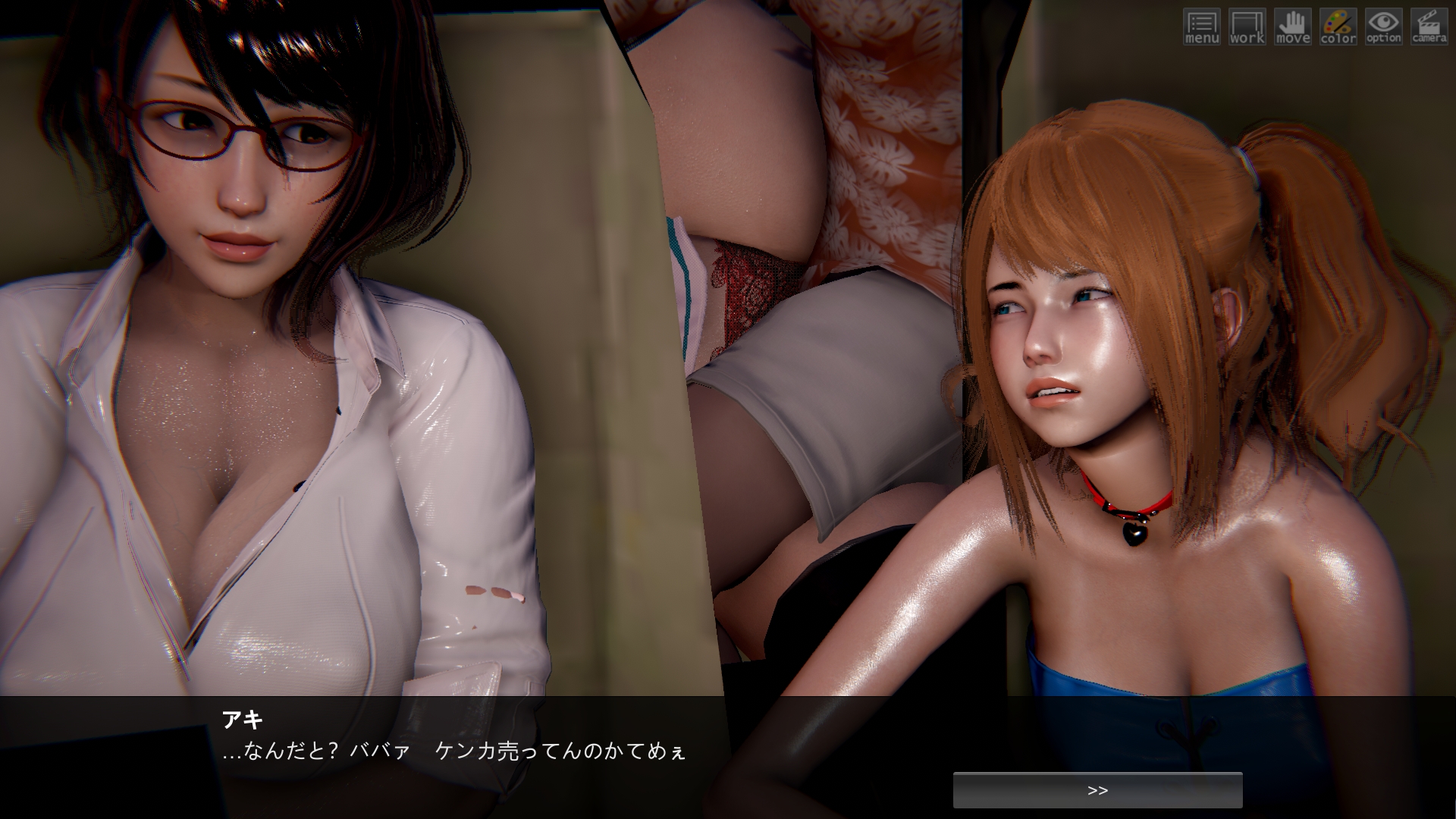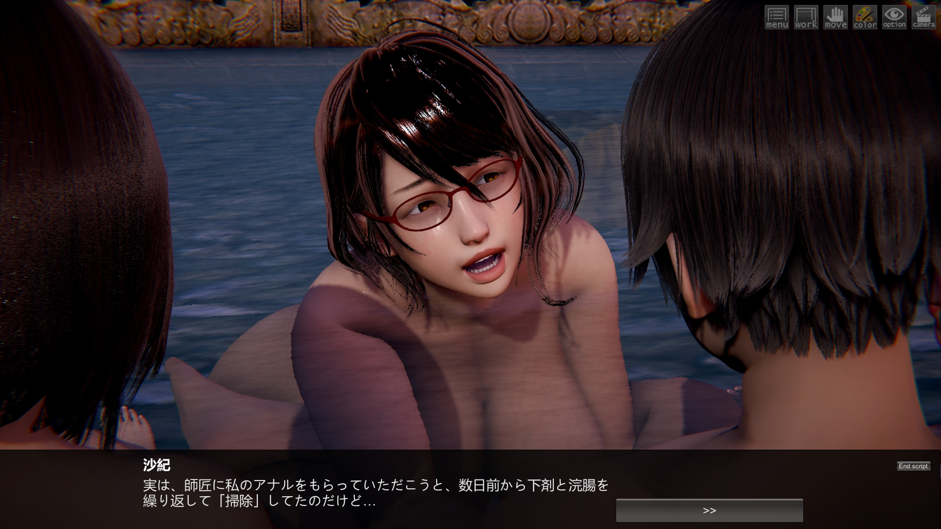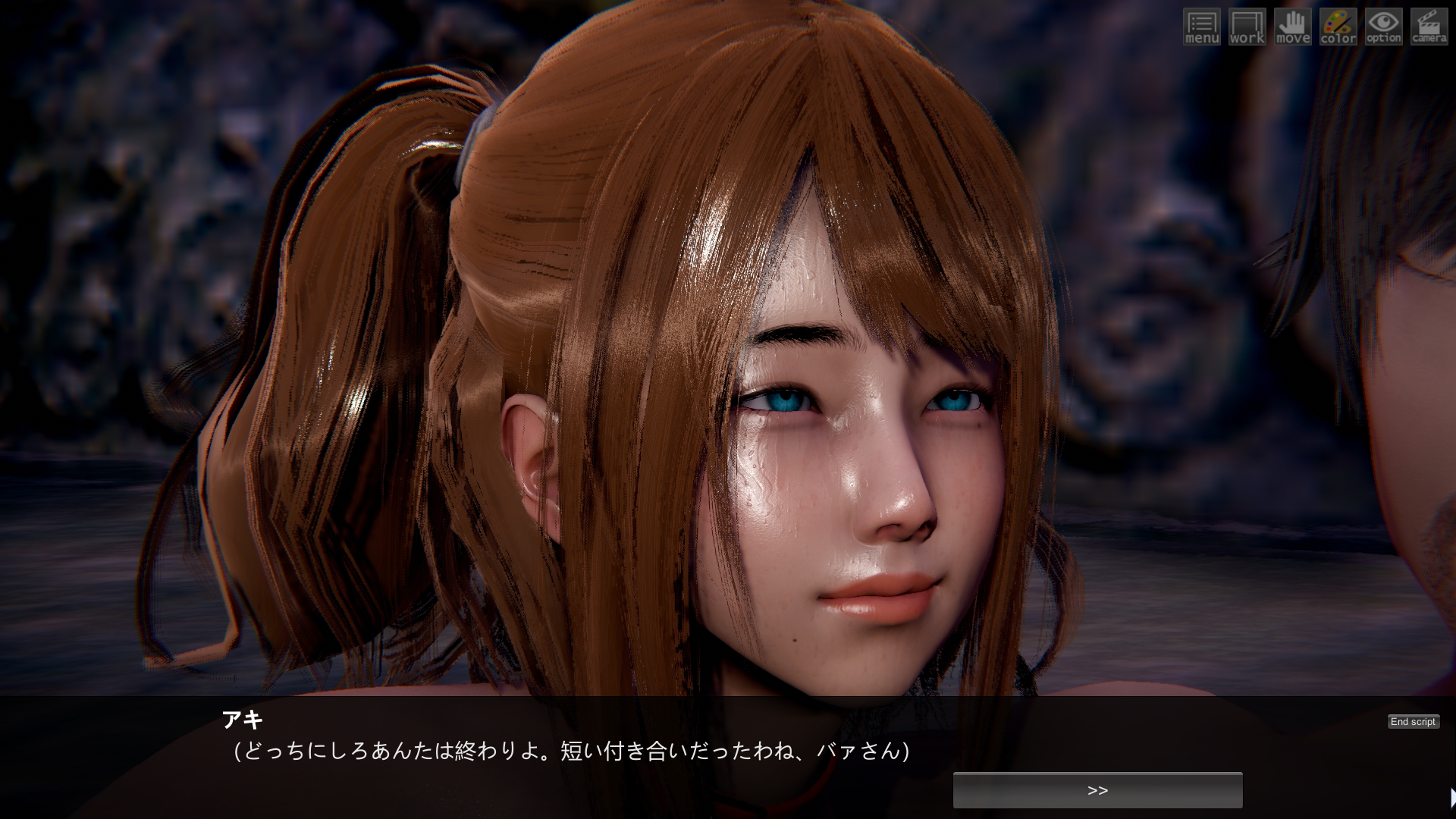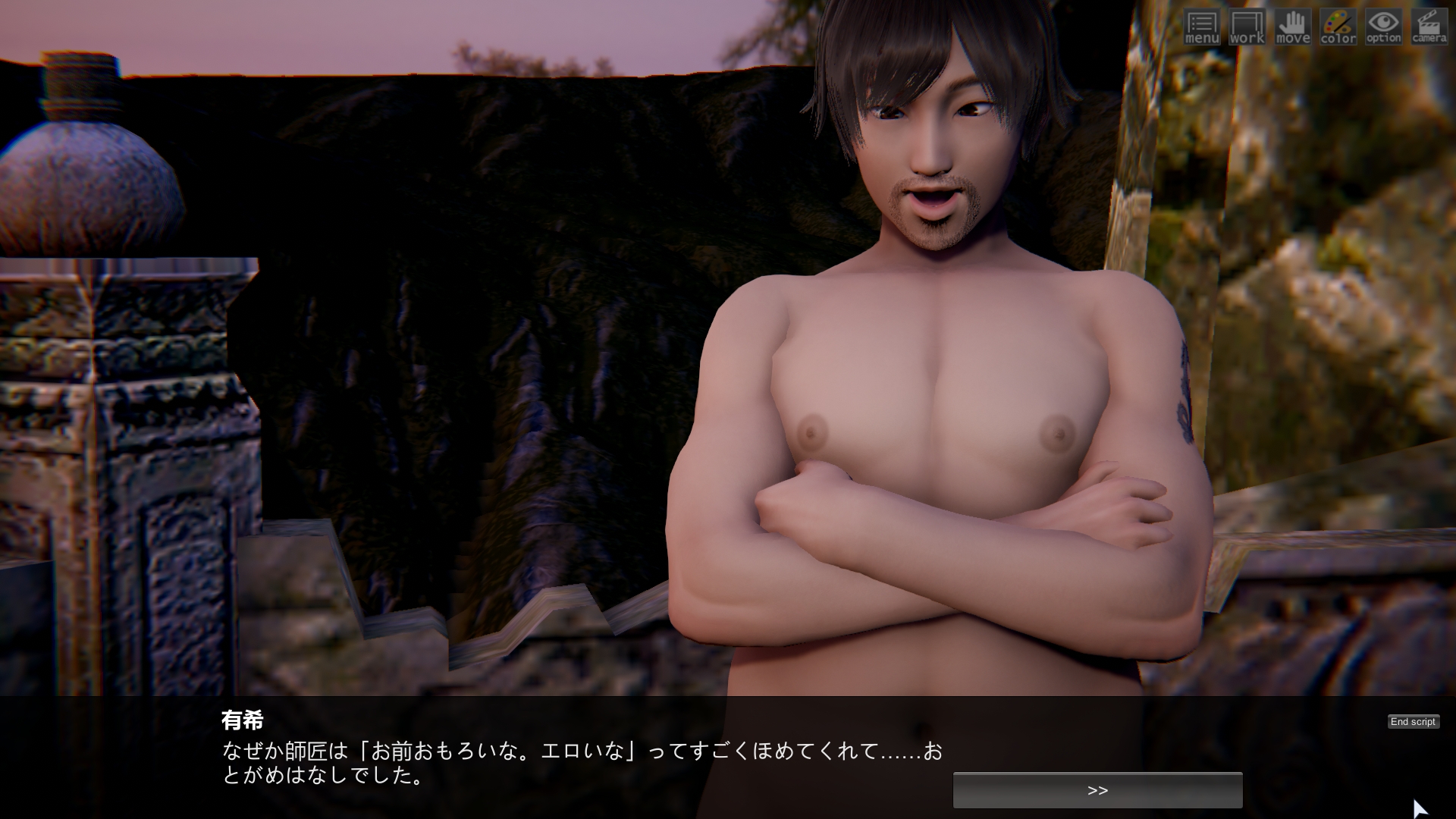 ・私の環境では、相変わらずsimple novelsとしてシーンをロードすると、graphicsの設定が一部ロードされない不具合が起きています。そのため、このシーン作成で使用したgraphicsの設定も同梱してあります。「美魔女5」フォルダ内にある「kan006(HDR).preset」を、graphicsの「Presets」フォルダにコピー。シーンの再生が始まってから(※ここ重要)、VNGEのメニューを呼び出し、「preset」から「kan005(HDR)」を選んでください。もちろんご自分のお好みの設定で鑑賞していただいても結構です。