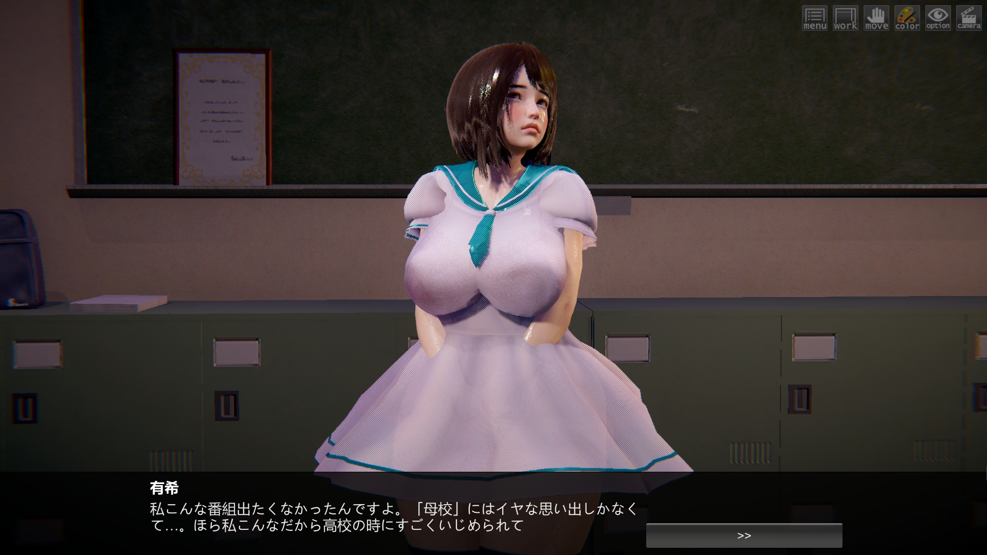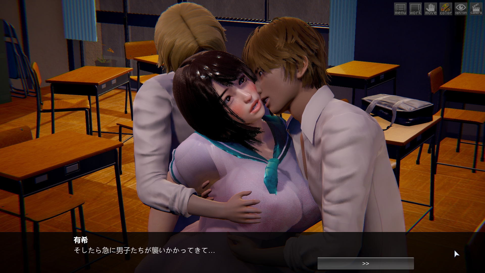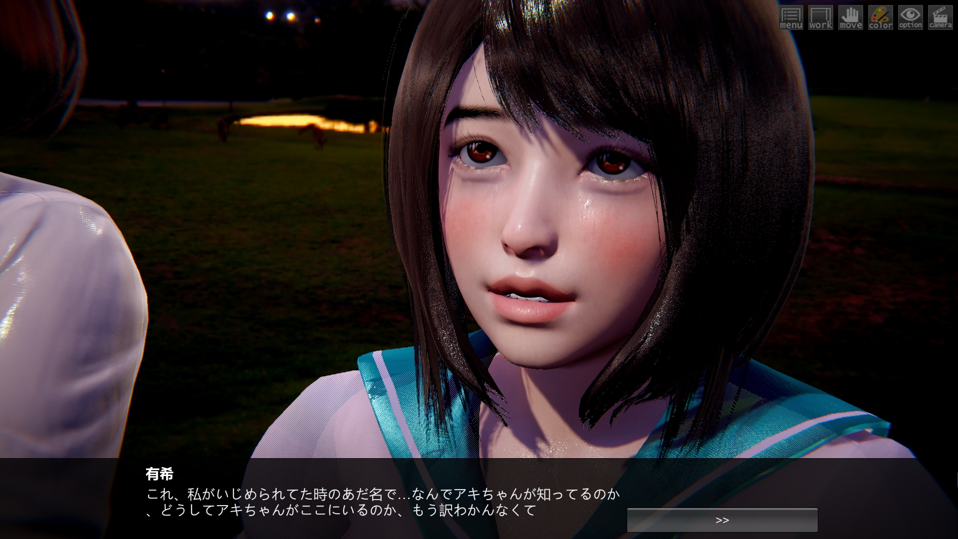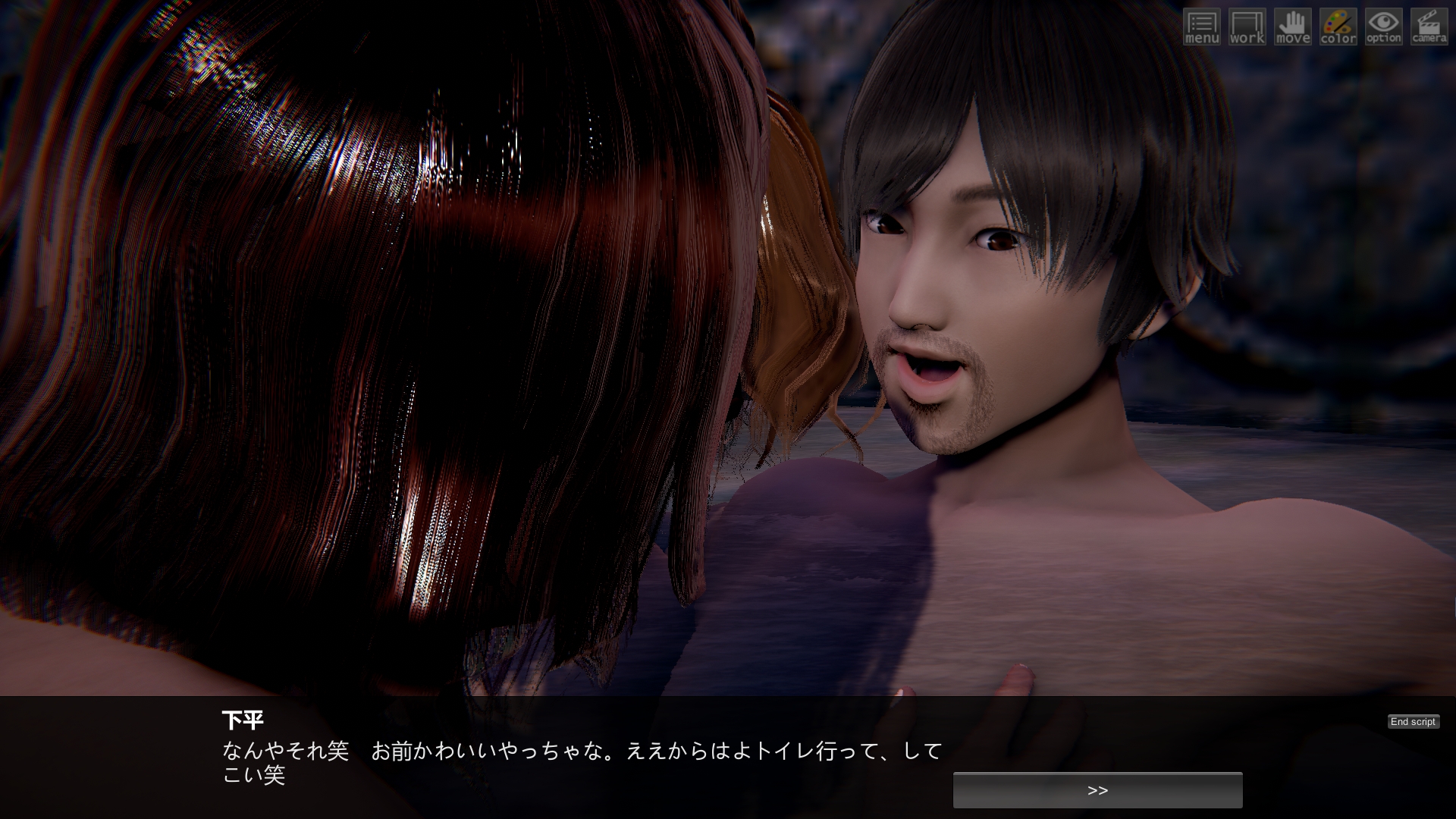 ・私の環境では、相変わらずsimple novelsとしてシーンをロードすると、graphicsの設定が一部ロードされない不具合が起きています。そのため、このシーン作成で使用したgraphicsの設定も同梱してあります。「美魔女5」フォルダ内にある「kan006(HDR).preset」を、graphicsの「Presets」フォルダにコピー。シーンの再生が始まってから(※ここ重要)、VNGEのメニューを呼び出し、「preset」から「kan005(HDR)」を選んでください。もちろんご自分のお好みの設定で鑑賞していただいても結構です。