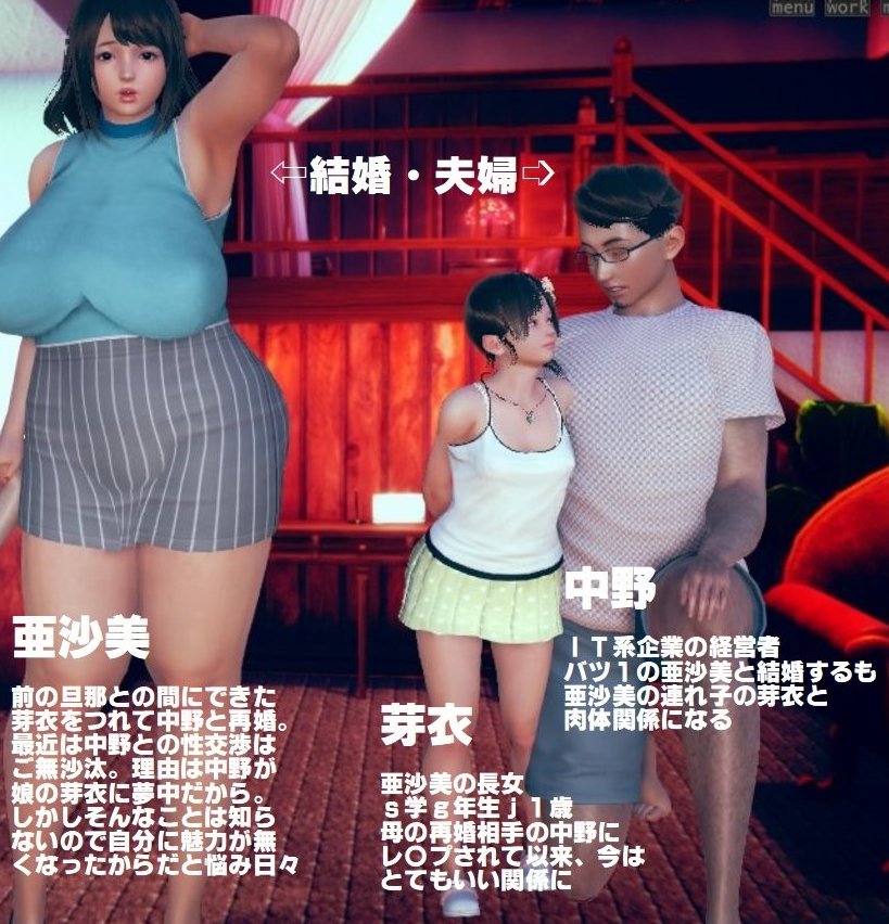 再婚相手の企業家・中野が、娘の女子s学生の芽衣ちゃんと肉体関係に。