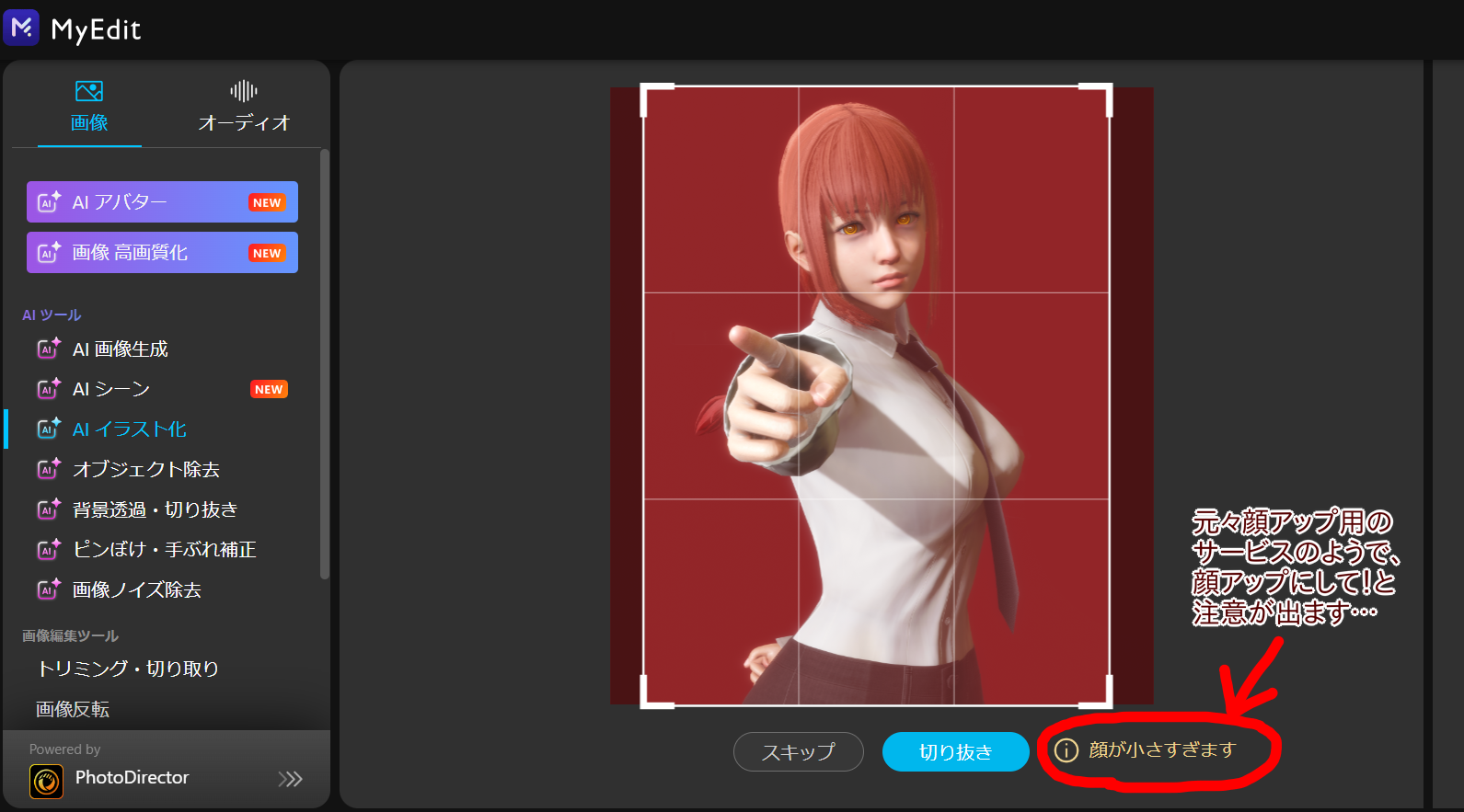 このサービスなら、元画像によって顔のデザインや雰囲気が全く違うものが出力されてしまう問題も解決できるな~と思ったのですが、プレミアム版に課金しないとロクに使えないのでそこだけがネックでした…